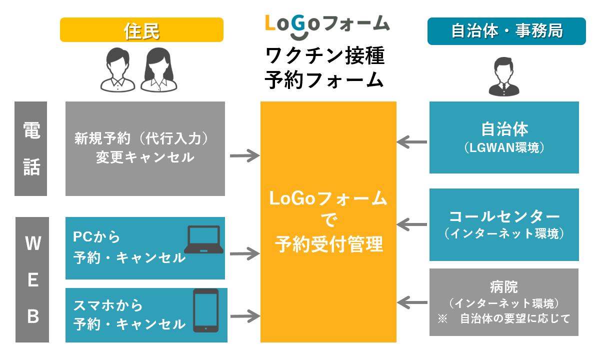 そこで、全国200超の自治体が利用する行政手続きデジタル化サービス「LoGoフォーム」を活用し、ワクチン接種の予約受付と管理を一元化できるようにしました。