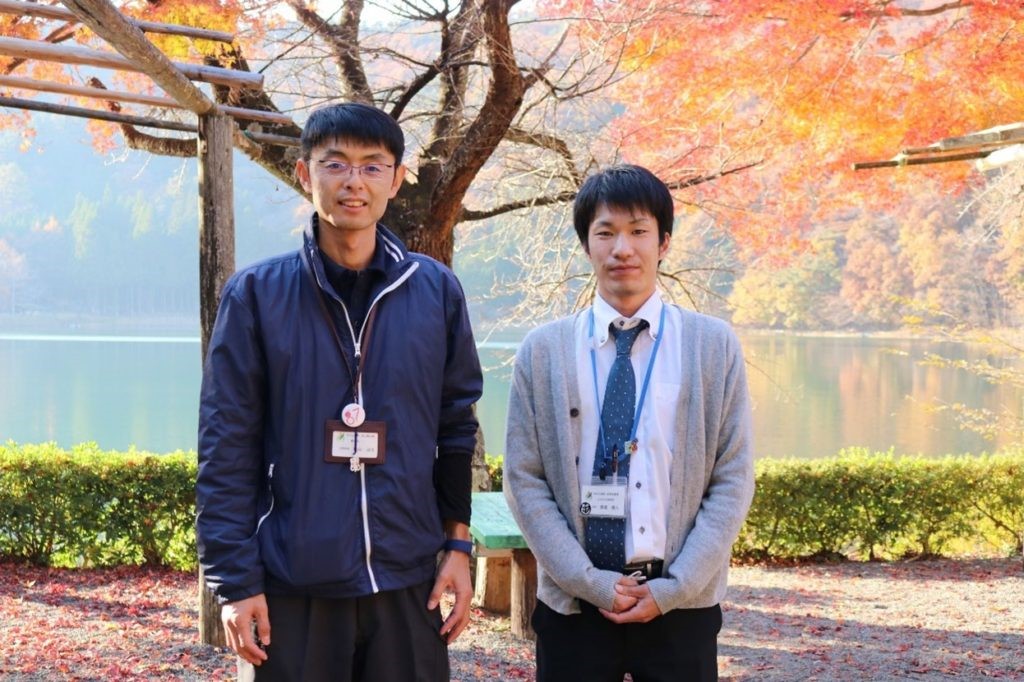 市川三郷町の四尾連(しびれ)湖にて撮影。秋山治久さん(写真左)と渡邉健人さん