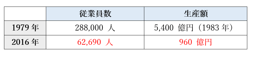 大きな枠組みでみる伝統工芸は、以前よりも明らかに衰退しています。伝統的工芸品産業振興協会の調査によると、1979年から2016年の37年間で、全国の従事者数は4分の1以下に。同様に生産額も減少しており、こちらは5分の1以下です。