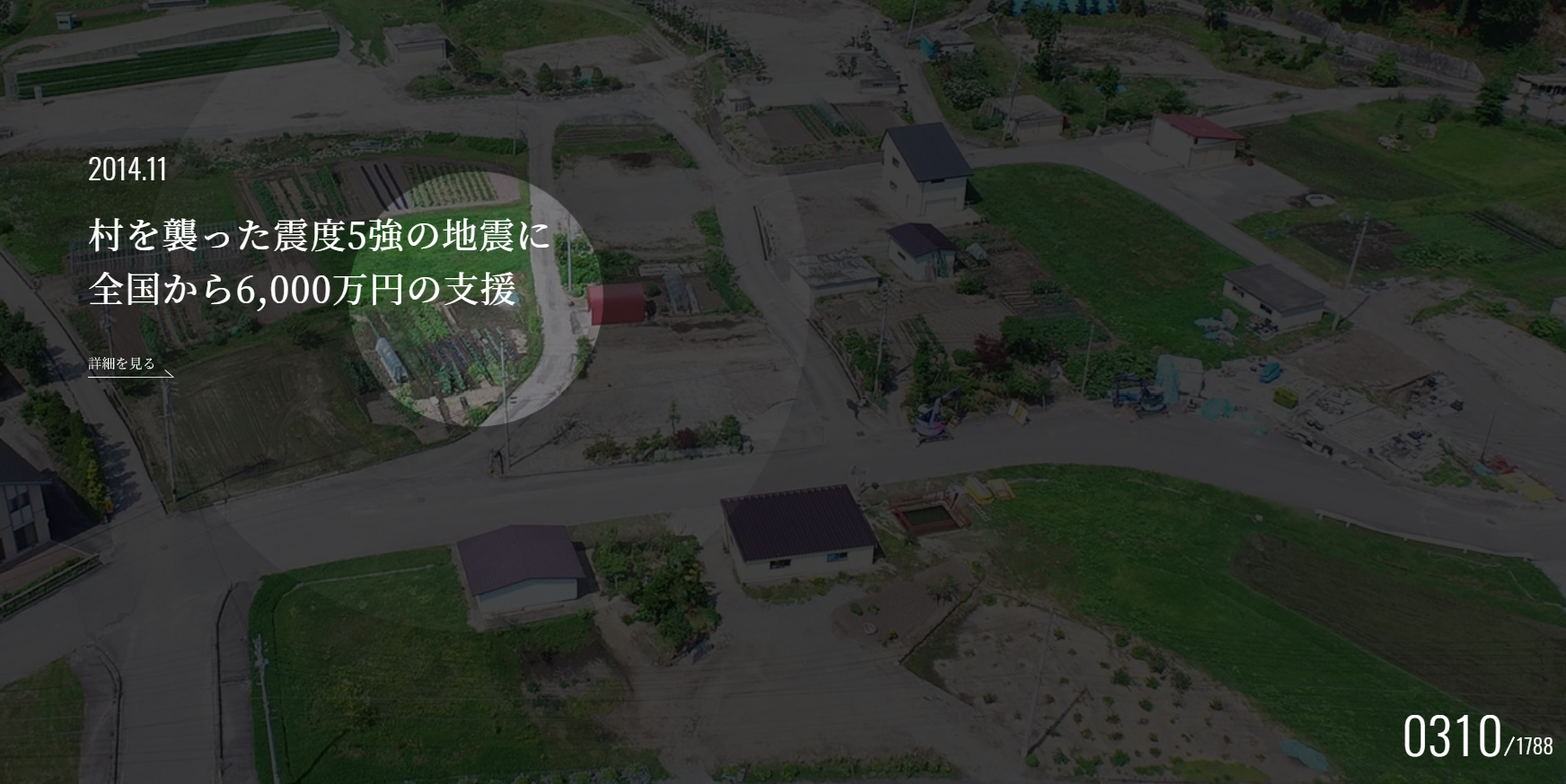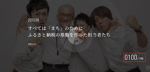 脇川:スクロールすると1ストーリーずつ止まっていく仕様で、しっかり目を止めて見てもらいたいという意図があります。さらに、これまで歩んできた歴史を表現するために右下の自治体数がどんどん増えていくようにしました。