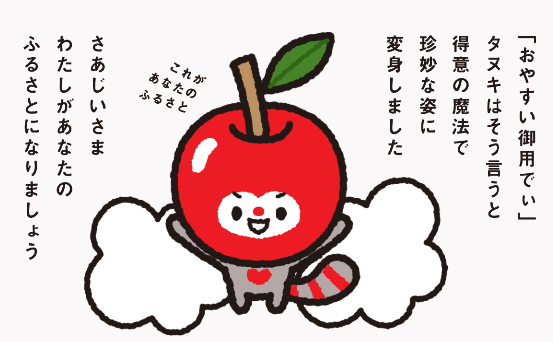 最初のストーリーに登場するチョイタは、北海道をイメージしたメロンの被り物をしていました。ただ、特定の都道府県のチョイタだけをストーリーに含めるのはひいきになってしまうと思いました。そのため、チョイタの被り物を一つの都道府県に限らず多くの産地を持つリンゴに変更しました。