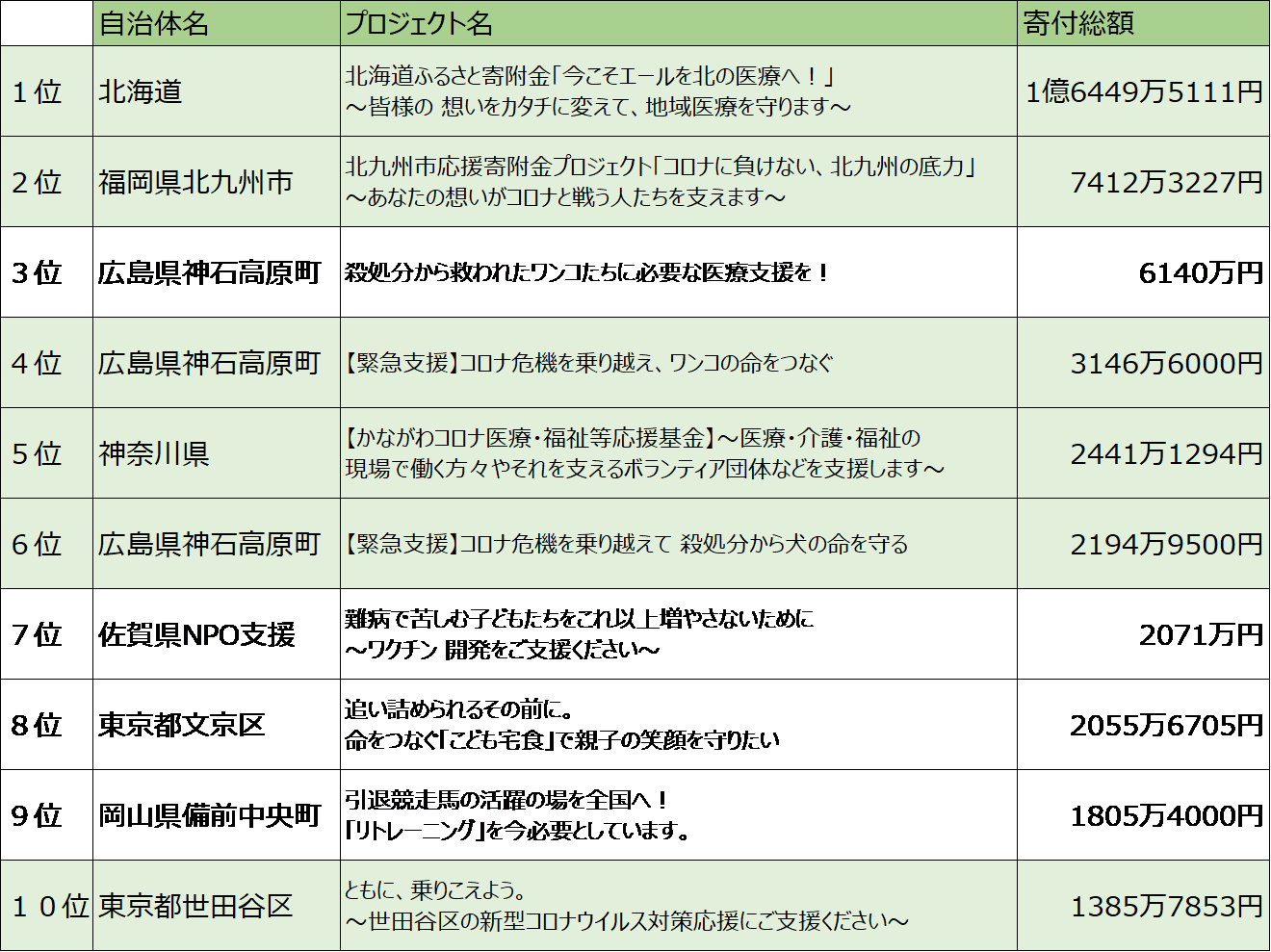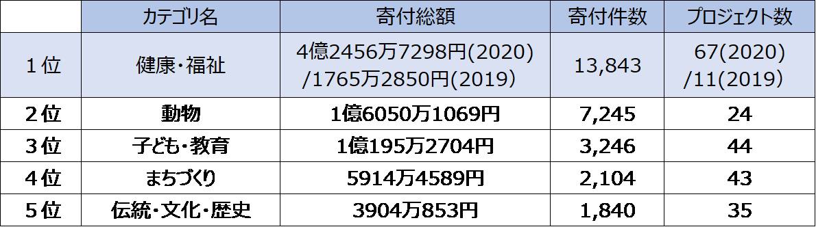 ★2020年寄付総額プロジェクトランキングTOP10
