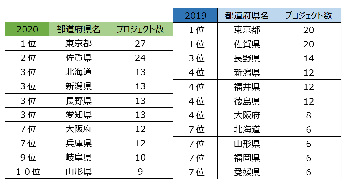 しかし、GCFではどうでしょう。昨年はプロジェクト数20件で佐賀県と同率1位、今年は27件で単独首位。具体的な自治体の施策に共感してもらい寄付を募るという制度の趣旨を重視し、GCFに積極的に取り組んでいる傾向があります。