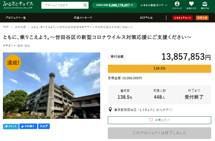 世田谷区のコロナ対策GCFページ