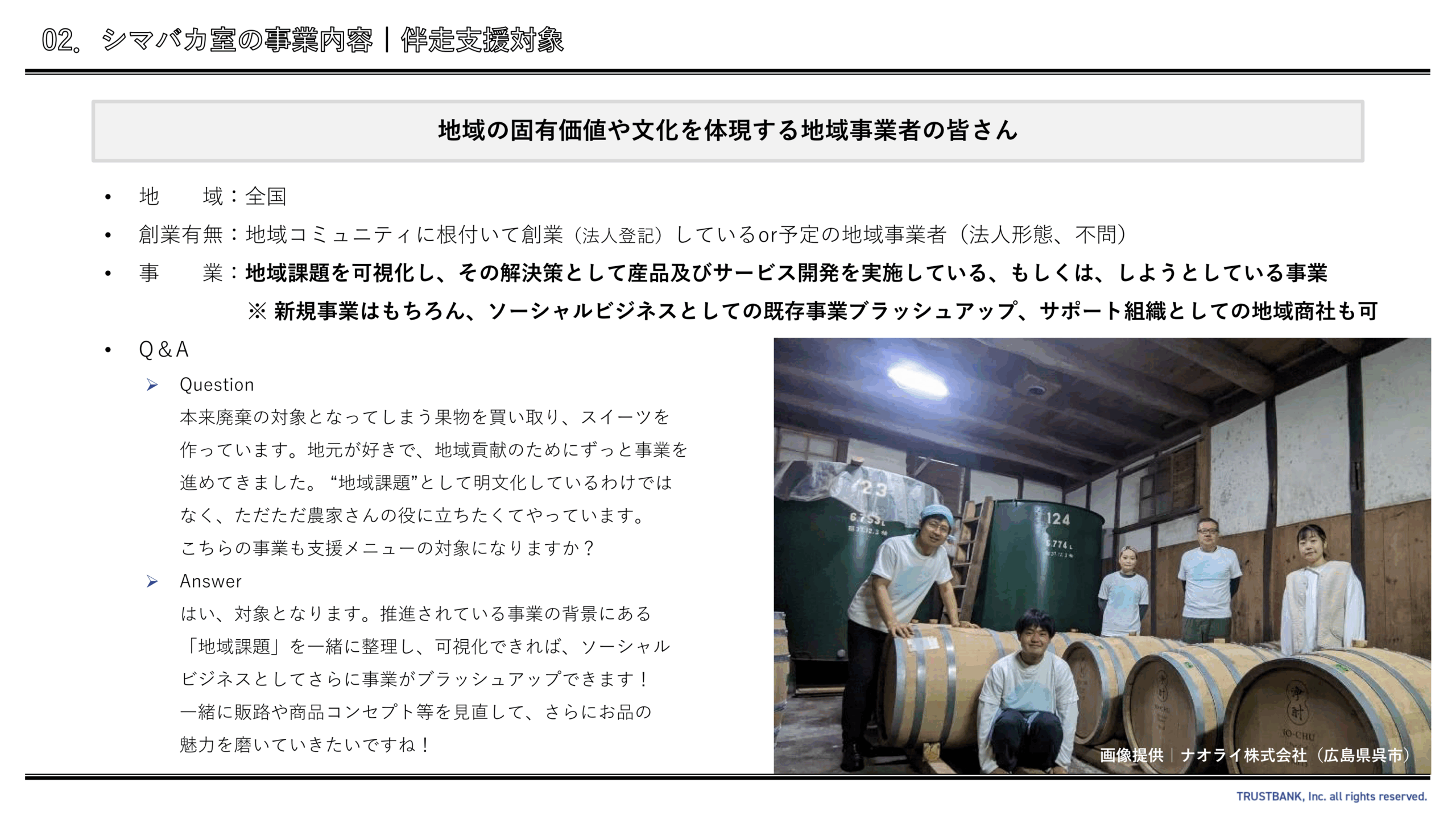 ※弊社コーポレートサイト「地域事象者支援事業について」ページより抜粋 https://www.trustbank.co.jp/ourservice/shimabaka/