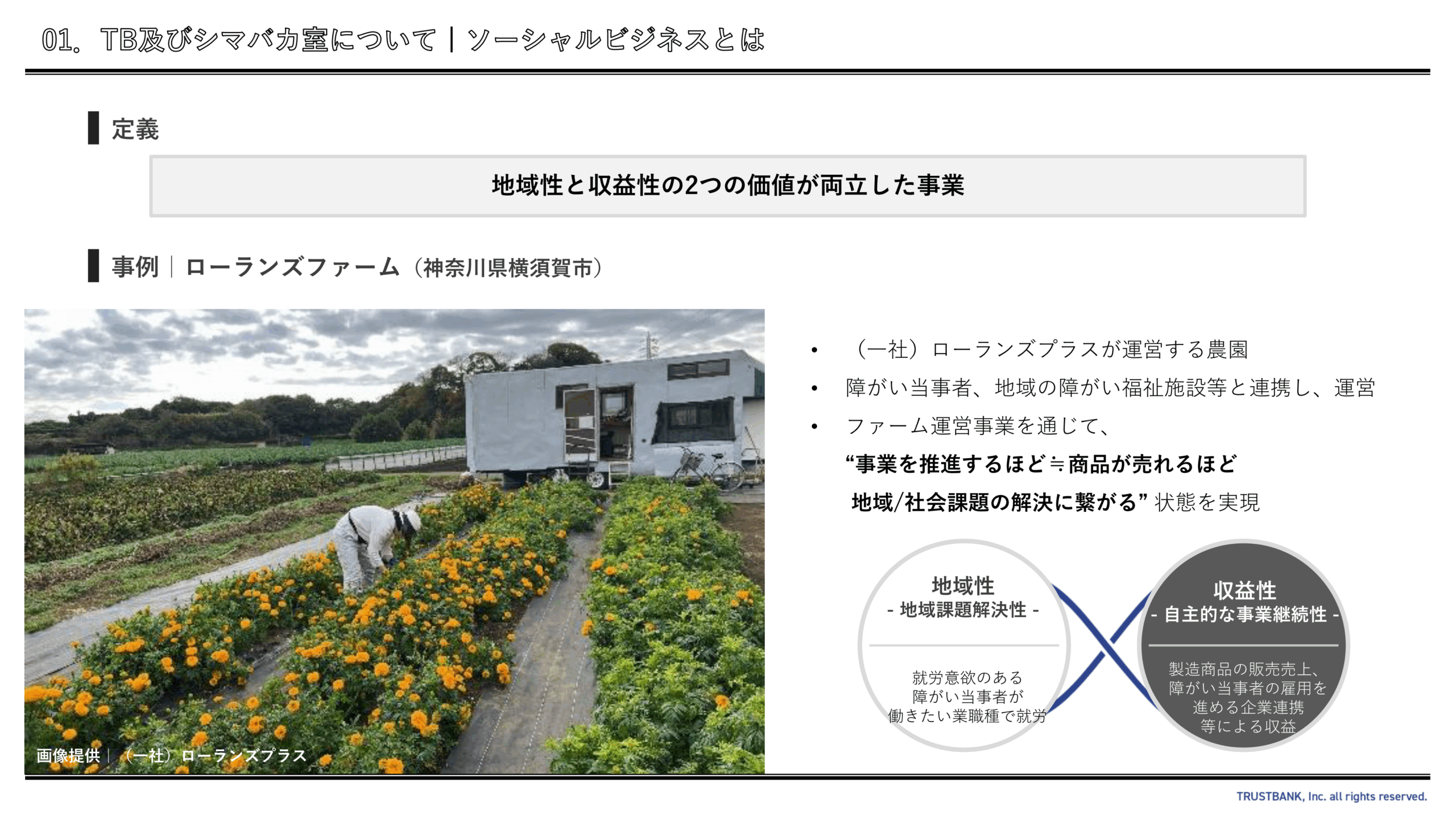 「シマバカ室が掲げている一番大切なミッションは、『地域事業者をシマバカ/縞馬化するための専門的な伴走』をすることです。ソーシャルビジネスが増えることで、解決する社会課題を減らすことが可能です。やりたいと思っても資金やノウハウ面でやることが難しい地域事業者の皆さんを専門的にサポートする役割を担っていると考えています。」